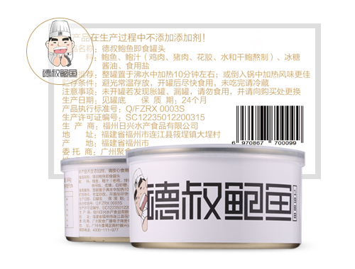 > 德叔即食鲍鱼罐头4只装【儿童款】